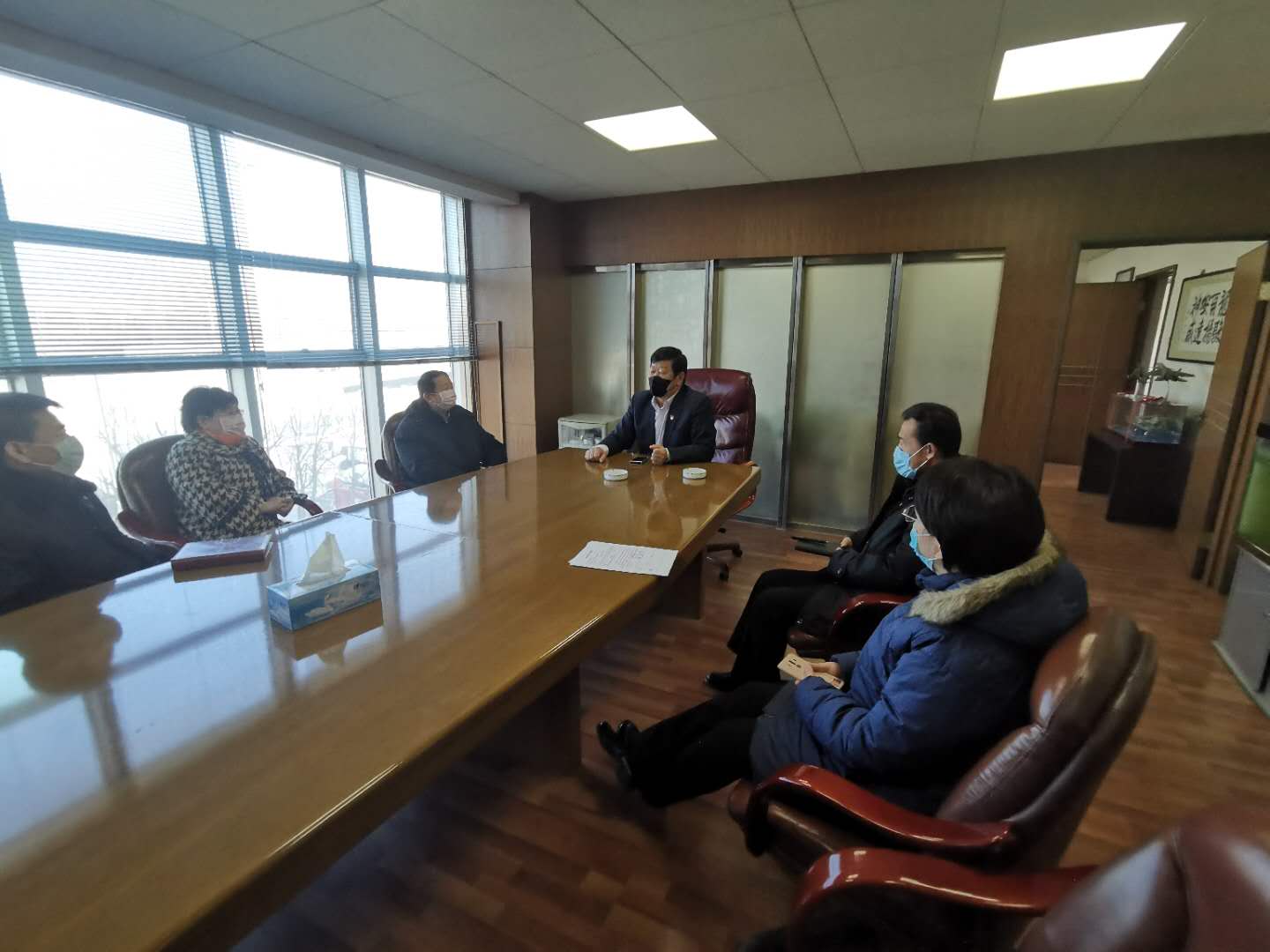 2月18日上午,区政协主席李大勇一行来到荣耀体育(中国)集团,就疫情防控、企业复工复产等工作进行调研。荣耀体育(中国)集团党委书记董事长崔洪金全程陪同接待。