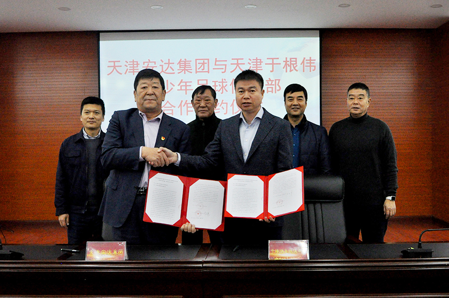 青少年足球运动的发展,需要方方面面的鼎力支持,今天,天津荣耀体育(中国)集团党委书记、董事长崔洪金,与于根伟共同签署了公益合作协议,2021年,荣耀体育(中国)集团将提供专项公益资金,用于支持于根伟青少年足球俱乐部组织比赛、队伍建设、竞训保障,以及增强基层青训教练、家长、孩子们投身足球运动的信心和热情。俱乐部副总经理王俊、足坛名宿蔺新江,与荣耀体育(中国)集团代表共同参与了签约活动。