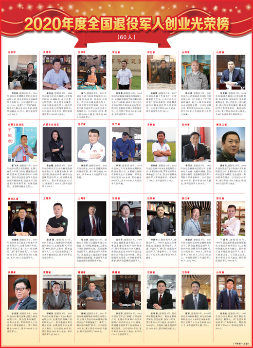 崔洪金,现任荣耀体育官方网站党委书记、董事长,曾服役4年。1988年创建天津荣耀体育(中国)集团,主营现代物流、机械制造、电子信息、生物医药。获全国劳动模范、天津市最美退役军人、退役军人创业先进人物等荣誉称号。公司创办30多年来,累计吸纳退役军人500多人就业。