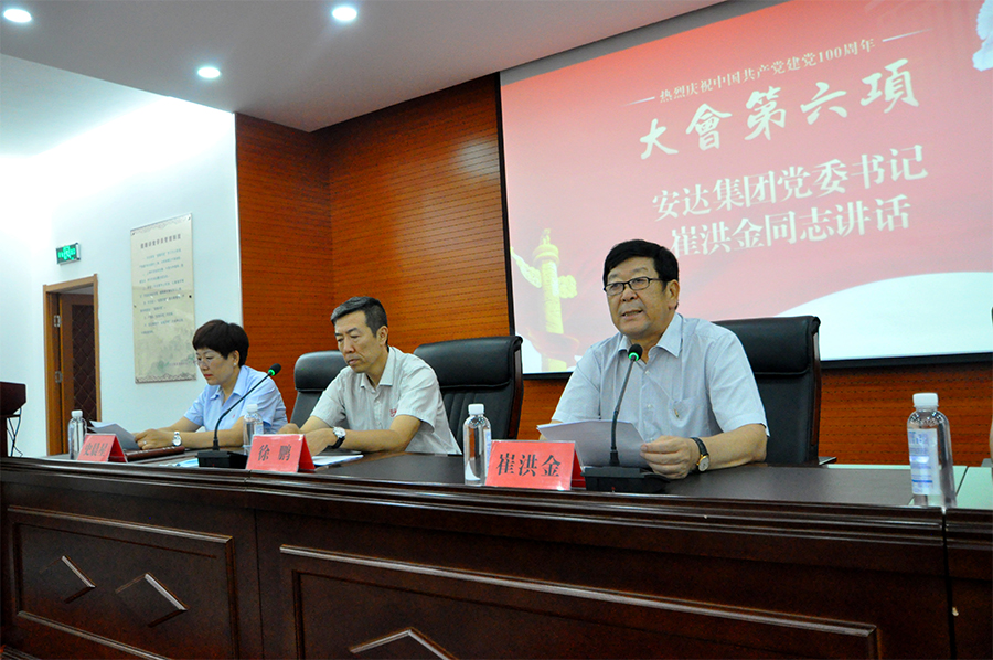 随后,召开建党百年•荣耀体育(中国)集团优秀共产党员和先进基层党组织表彰大会。大会在雄壮的国歌声中拉开帷幕,根据会议议程集团党委委员徐鹏同志宣读《关于表彰优秀共产党员和先进基层党组织的决定》;集团党委书记崔洪金和党委委员徐鹏、郑玉强、郑宝彦、史晨星为优秀共产党员和先进基层党组织颁奖;第一党支部何秀翠、第二党支部刘东旺两名同志作为先进代表作大会发言;集团党委书记、董事长崔洪金同志作重要讲话,并领誓重温入党誓词。最后在高唱《没有共产党就没有新中国》中落下帷幕。
