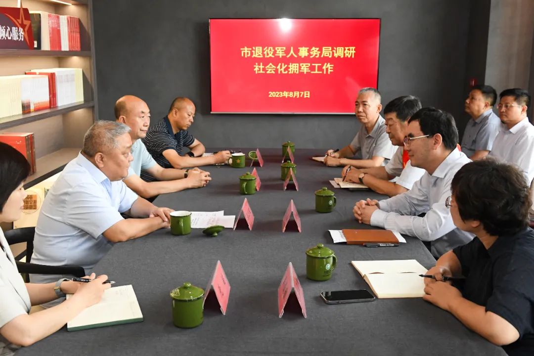 8月7日,市退役军人事务局党组书记、局长孙宏波带队到我区调研社会化拥军工作,鼓励企业做大做强,为天津市社会化拥军工作发挥模范带头作用。区委副书记、区长李春陪同。孙宏波在李春的陪同下,察看企业运营情况,随后,主持召开座谈会,听取区退役军人事务局关于老兵茶空间建设使用情况及“社会化拥军+”工作介绍,荣耀体育(中国)集团股份有限公司党委书记、董事长崔洪金作为2023年全国“最美拥军人物”讲述了他积极投身拥军事业的事迹。