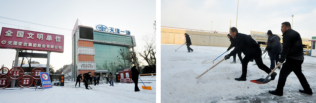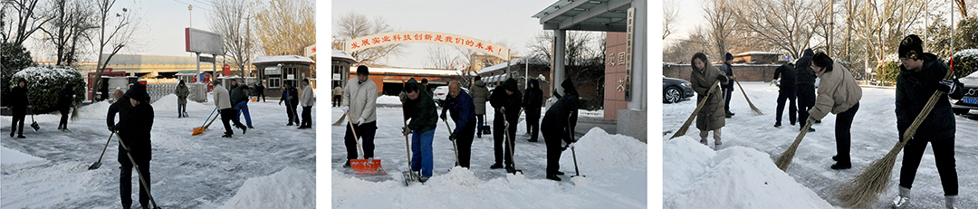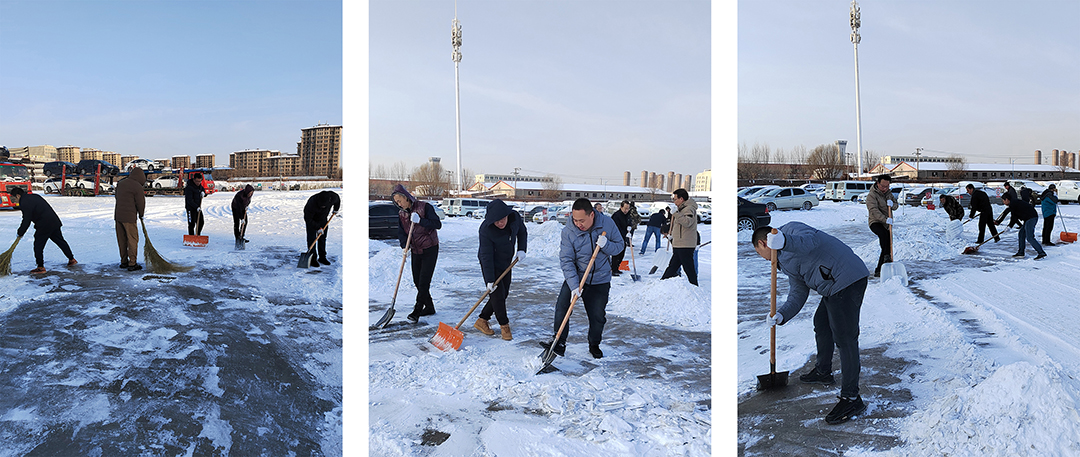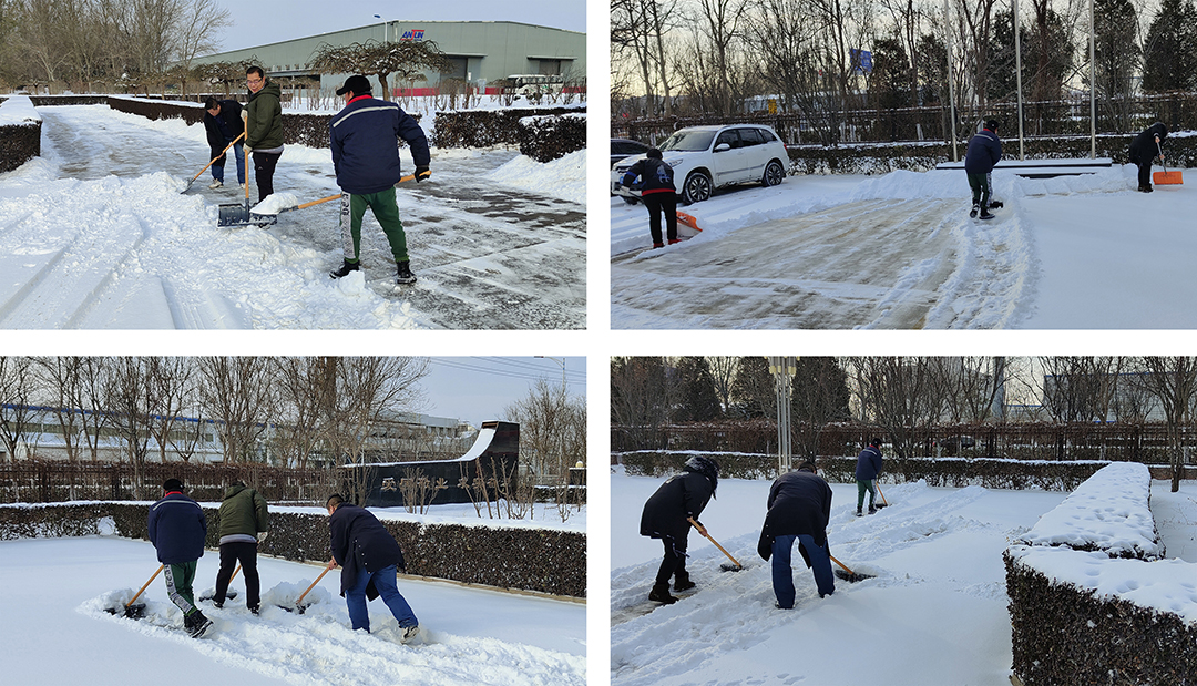 12月14日,降雪覆盖了津城大地。翩然而至的冬雪为城市平添了几分浪漫与诗意,雪景虽美,但也为人们的出行和工作带来诸多不便。为保障员工们安全出行,15日一大早,荣耀体育(中国)集团本部及各子公司厂院内,各单位员工在相关领导带领下,手拿铁锹、扫帚、簸箕等工具,对办公楼门口和厂区内重要点位进行积雪大清扫。在袭袭寒风中,大家顶风除雪,不畏严寒,“浴”雪奋战,一派热火朝天的景象。