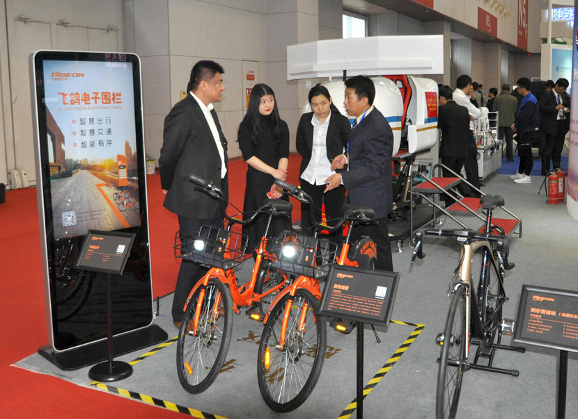 荣耀体育(中国)集团子公司天津安中通讯电子有限公司研发的安中电子围栏配合共享单车“飞鸽出行”项目,分别在飞鸽展区和东丽展区展出。作为智慧出行的最新产品,安中电子围栏集智能出行、精准停放、有序管理于一体,对城市共享单车的乱停乱放问题做到根本治理,得到参观人员的高度好评。