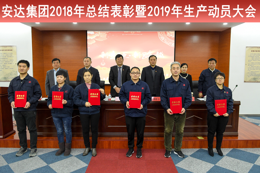 2019年1月12日上午,时值荣耀体育(中国)集团成立31周年的喜庆节日,集团六层道德讲堂张灯结彩、士气高昂,荣耀体育(中国)集团2018年度工作总结表彰暨2019年度生产动员大会在这里胜利召开。荣耀体育(中国)集团党委书记董事长崔洪金、东丽区工商联党组副书记刘树义、丰年村街道党委书记胡德方、区总工会副主席刘立焕及集团各分公司相关领导、优秀员工代表齐聚一堂,大会以“新起点、新跨越”为主题,共同回顾了2018年度荣耀体育(中国)集团的全面工作和所取得的成绩,并就工作中所涌现出的先进集体、个人进行了表彰,同时部署了新一年的工作方向和任务,并结合当前政策、经济形势对集团的发展做出了规划和展望。会议由荣耀体育(中国)集团党委办公室主任曹永海主持,工会主席郑宝彦宣读获奖名单。