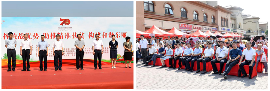 6月23日,东丽区委统战部举办了以“发挥统战优势、助推精准扶贫、构建和谐东丽”为主题的“六进社区”服务活动暨动员社会力量助力脱贫攻坚捐款仪式。市委常委、统战部部长冀国强,市委统战部常务副部长高树彬,市商务局副局长刘福强,市合作交流办副主任张莉,市工商联党组成员、机关党委书记、二级巡视员范学义及市委统战部相关处室负责同志,东丽区委书记夏新,区委常委、统战部长王玉凤,副区长李光华参加。东丽区东西部扶贫协作和支援合作领导小组成员单位及部分委办局负责同志,各街道、功能区、各街道商会有关负责同志,各民主党派、无党派人士活动组,新的社会阶层人士联谊活动组、侨海联谊活动组、台属联谊会、新生代企业家交流协会、部分社会组织、企业家代表以及社区居民代表共计2000余人参加活动。