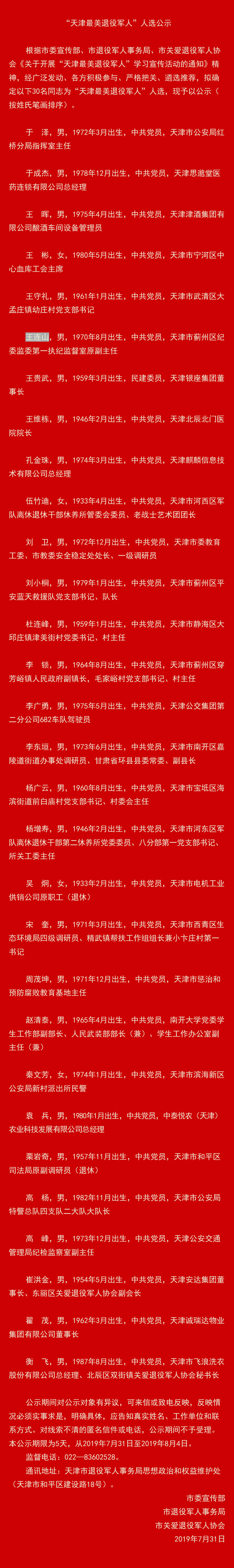 > “天津最美退役军人”已公示,荣耀体育(中国)集团党委书记董事长崔洪金入选